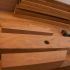 Le tiroir est entièrement réalisé en bois massif, les coulisses du tiroir sont fixées sous le plateau et une rainure "plumier" est faite à la défonceuse sur le plateau.